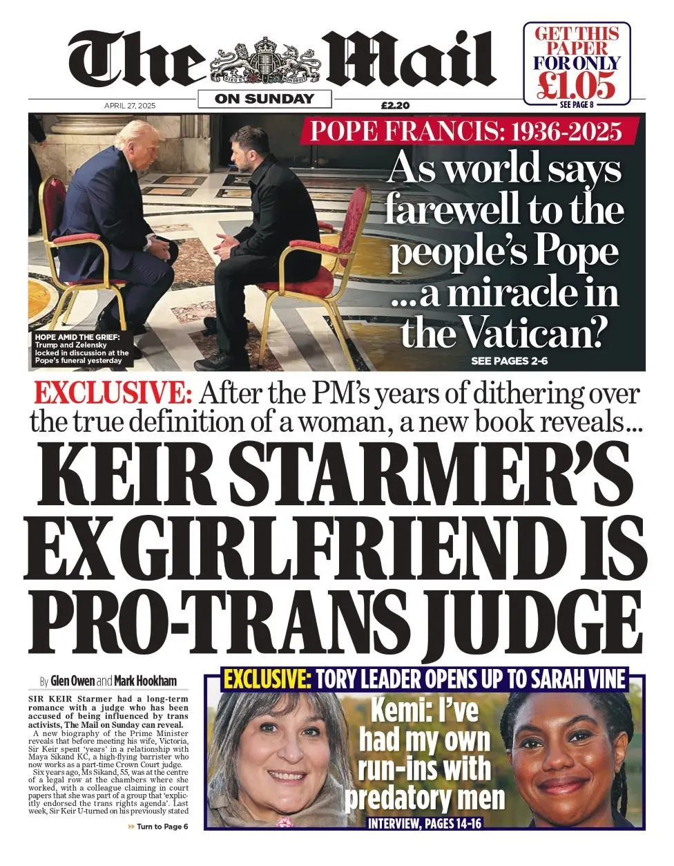 On a day when most of the print media are focused on important world events including the funeral of Pope Francis and the face-to-face meeting between Trump and Zalensky, it is truly shocking that the Mail on Sunday printed this headline. It is a desperate attempt by the extreme right to keep trans issues and Keir Starmer in the news at any cost.