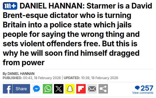 No 83: DANIEL HANNAN: Starmer is a David Brent-esque dictator who is turning Britain into a police state which jails people for saying the wrong thing and sets violent offenders free. But this is why he will soon find himself dragged from power